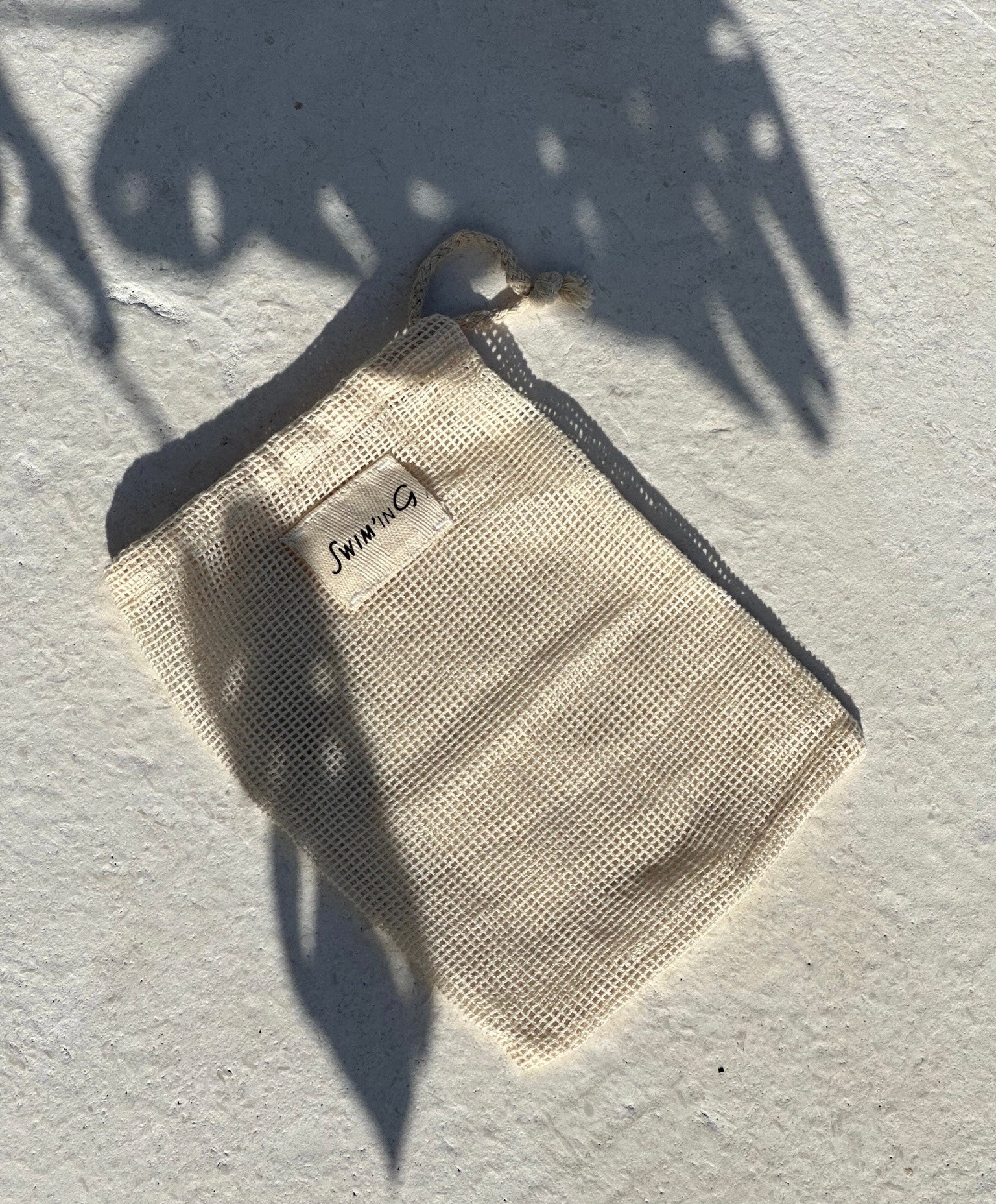 In every package, you receive your swimmies bundled up in a Swim’in G cotton mesh bag.